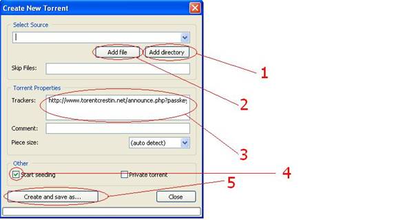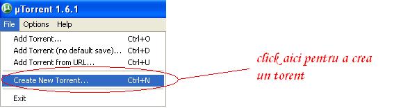 este primul pas pentru a crea un torent: File>Create New Torrent