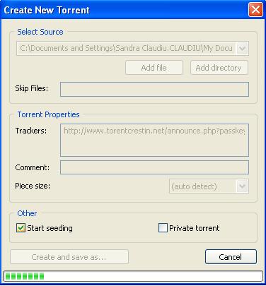 dupa ce ai dat Create New Torrent iti va aparea fereastra de mai jos