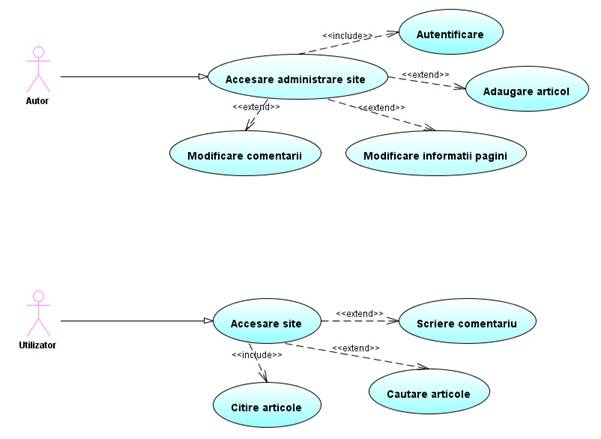 Pentru o prezentare cat mai elocventa vom prezenta atat situatia in care cel care utilizeaza site-ul este administratorul cat si situatia in care un vizitator incearca sa profite de informatiile oferite de catre cel care detine site-ul.