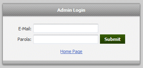 Imaginea de mai jos va aparea in momentul in care administratorul acceseaza partea de administrare a site-ului. Toate fisierele se afla in folderul "admin". Pentru autentificare administratorul va introduce emailul si parola oferita la instalare.
