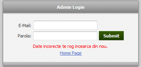 Daca datele sunt introduse incorect va aparea un mesaj la fel ca in imaginea urmatoare: