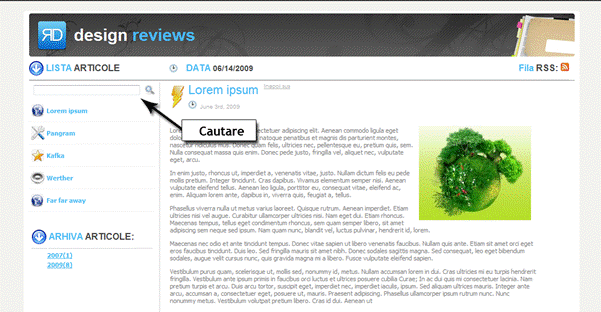 o posibilitatea de a cauta dupa anumite articole doar prin introducerea unui/unor cuvinte cheie;