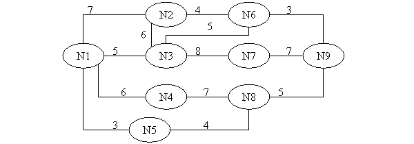 punctele N1 si N9. Graful are 9 noduri: N1, N2, , N9 si 13 arce.