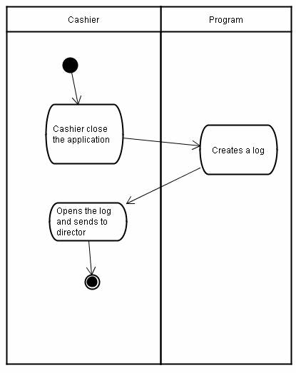 Main Actor : cashier , program Pre-conditions : cashier is asked by director to present the number of tickets he created today Trigger event : cashier closes the application è the application will create a log with the created tickets ( emuseum.log ) Main flow of events :