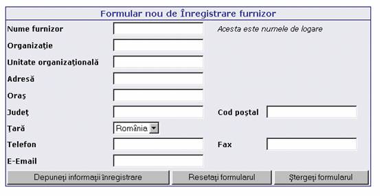 Primul formular de inregistrare este cel in care trebuie inserate date personale. "Numele Comun al Furnizorului" va fi utilizat ulterior ca nume folosit pentru conectare (Login name). Este indicata evitarea utilizarii spatiilor si a altor simboluri speciale.