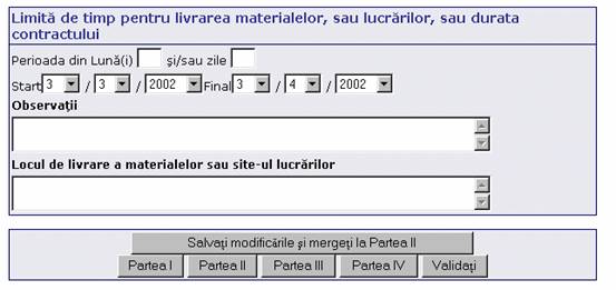 Daca optati pentru crearea unei noi notificari, veti fi transferati in acelasi formular dar avand toate campurile goale. O notificare contractuala se compune din 4 parti. Cand creati o noua Notificare Contractuala veti avea la dispozitie numai optiunea " Salvati Modificarile si treceti la PARTEA a II a (Save Changes and go to PART II). Dupa aceasta prima salvare veti avea optiunea de a merge in oricare din cele 4 parti, validand astfel notificarea, iar la partea a IV a aveti posibilitatea de a trimite notificarea.