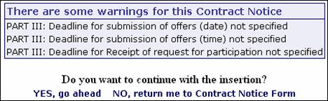 Din acest moment puteti apasa butonul "Salvati si Depuneti Notificarea" (Save and Submit Notice) pentru a depune notificarea. Tineti cont de faptul ca dupa depunere, se va face validarea si, daca sunt gasite erori de nivel 1, depunerea va fi anulata. Va trebui sa va intoarceti la formularul de editare si sa corectati erorile. Daca apar avertizari, vi se vor da indicatii despre actiunile care trebuie intreprinse: