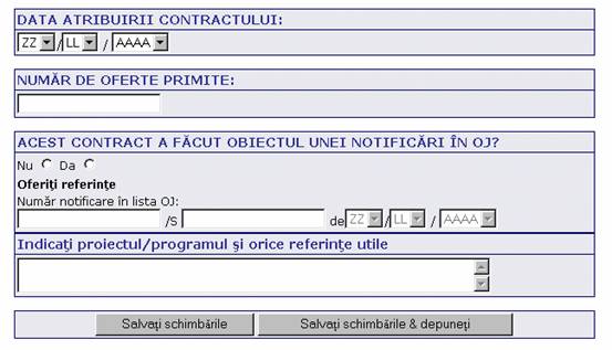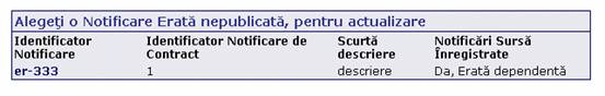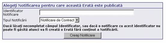 De aici puteti schimba datele Contractului. Acest lucru trebuie sa se petreaca NUMAI dupa ce a fost publicata intai o notificare tip errata de catre Autoritatea Contractanta. Va avertizam ca la vizualizarea detaliilor unei notificari (cautati una si apoi accesati-o) vor fi afisate inca datele originale, dar oriunde in alta parte se vor folosi si afisa datele noi.
