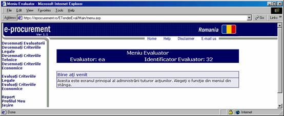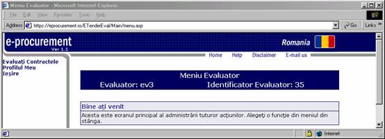 Acum va puteti intoarce la site-ul public si urmati link-ul pentru "Conectare Evaluator (Evaluator Login)". Pentru mai multe informatii cititi sectiunea corespunzatoare din acest manual.