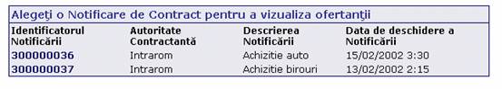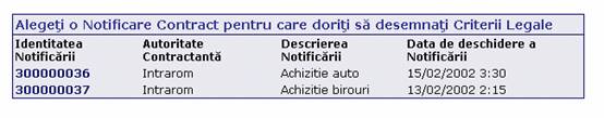 Apasand pe link-ul " Notificari Contractuale (Contract Notice)" veti avea trei optiuni: