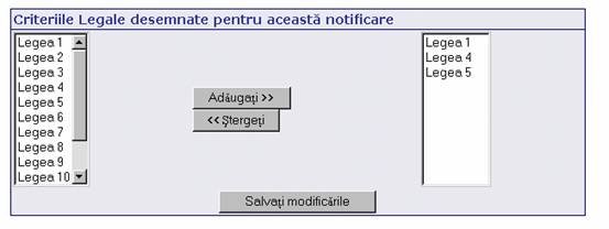De aici se pot administra Criteriile Legale. Accesand o descriere din cadrul de jos se pot completa valorile din cadrul de sus. Acolo se pot edita criteriile si apoi apasati "Actualizare", pentru a le salva, sau "Stergeti", pentru a sterge complet inregistrarea respectiva.