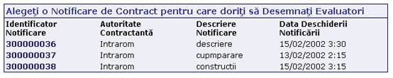 Apasand campul "Notice ID", care este de fapt un link, sistemul va va prezenta editarea principala pentru desemnarea Administratorilor Evaluatori.