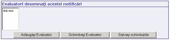 Pentru a sterge un evaluator selectat, selectati numele acestuia din casuta si apasati butonul "Schimbati Evaluator" (Remove Evaluator). Pentru salvarea administratorilor apasati butonul "Salvati Modificarile" (Save Changes).