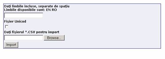 In partea de sus a paginii exista un link numit "Import din fisierul CSV". Acesta se utilizeaza pentru a insera noi inregistrari dintr-un fisier text.