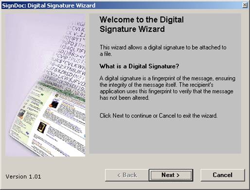 SignDoc este un program care semneaza digital documentele. Puteti alege mai multe fisiere, iar SignDoc va crea un fisier ZIP continand toate documentele si unul de semnatura corespunzator. Fisierul ZIP va avea extensia ".zip" in timp ce fisierul semnatura va avea extensia ".zip.sig"