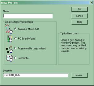 Analog or Mixed Signal Circuit Wizard - aceasta permite editarea de scheme analogice sau digitale, simularea acestor scheme precum si crearea fisierului de legatura *.mnl necesar realizarii cablajului;