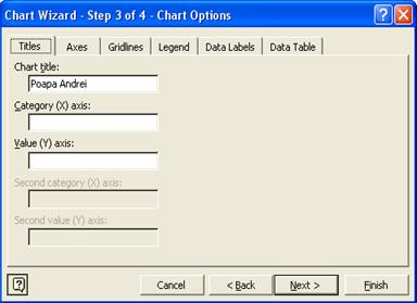 In pasul al treilea sunt stabilite date suplimentare care pot apare in grafic:
