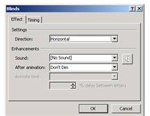 prin executarea comenzii Effect Options. se pot asocia animatiilor efecte speciale,
