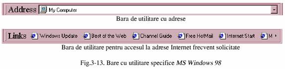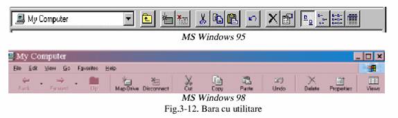 Spre deosebire de MS Windows 95, unde o singura bara cu utilitare era disponibila, sub MS Windows 98 pot fi afisate pe ecran mai multe bare cu utilitare (functionalitatea lor este explicata ulterior).
