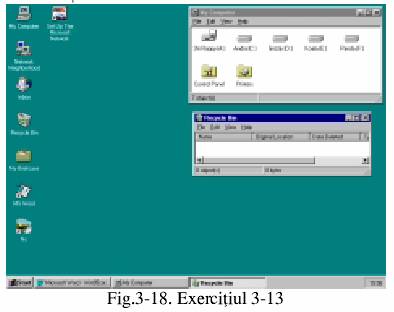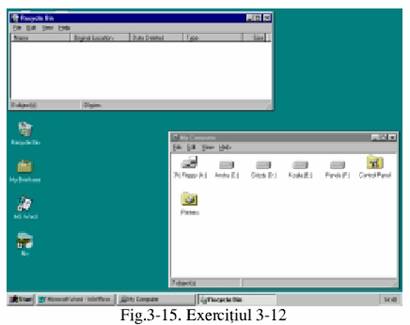 Deschideti aplicatia Recycle Bin si mutati fereastra acesteia in coltul din stanga sus al desktopului. Rezultatul final ar trebui sa fie similar cu cel din figura 3-15: