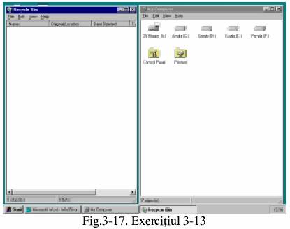 Dimensionati fereastra aplicatiei Recycle Bin astfel incat sa ocupe toata portiunea din jumatatea stanga a desktop-ului, ca in figura 3-17: