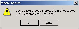 Pentru a captura cat doresti, la Capture Method alegi 'Auto with no time limit'. La file alegi numele si locul fisierului .avi care va fi capturat. In tabul Advanced eu am lasat cum era default. Dupa click pe OK apare un mesaj: