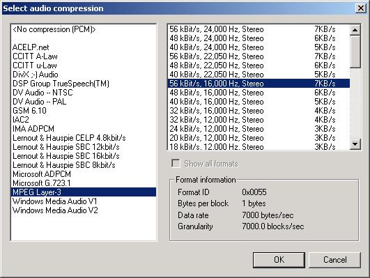 Am ales codecul MP3 cu o calitate destul de slaba deoarece nu ma intereseaza in mod special sunetul pentru acest film.