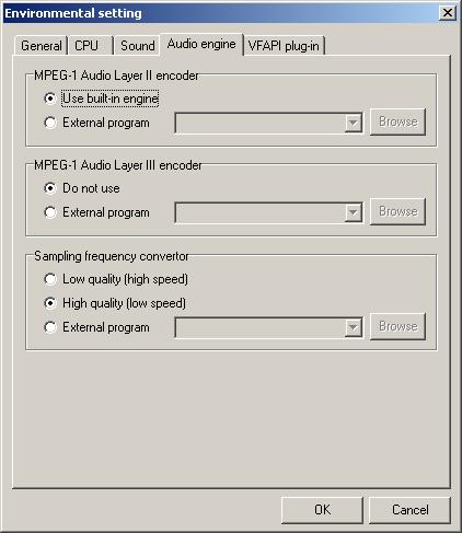 Encodarea pentru standardul S-VCD (Super video cd) in cazul nostru. Se deschide TMPGEnc care se lanseaza cu un wizard, inchidem acest wizard pentru ca inainte avem nevoie sa setam conversia frecventei sunetului: Option->Environmental Settings -> tabul Audio engine-> bifat butonuul radio cu eticheta High quality (low speed).