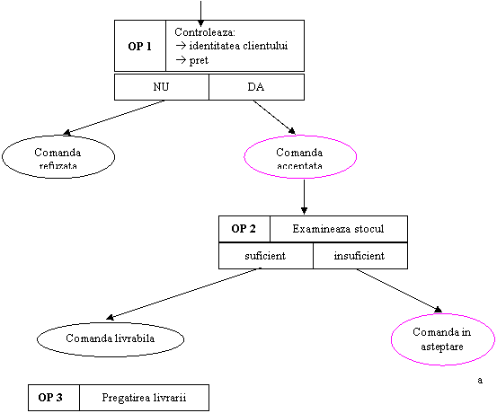 Exemplu: Pentru descrierea detaliata a blocului corespunzator operatiei "Examinarea comenzii in asteptare". organigrama se va prezenta astfel: