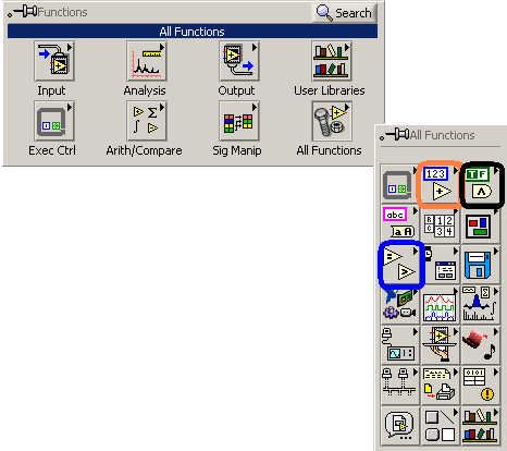 Figura 2. Functiile numerice ale mediului LabVIEW.