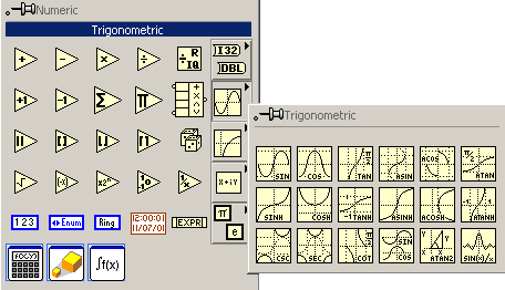 Figura 3. Functiile trigonometrice ale mediului LabVIEW.