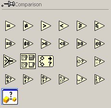 Figura 8. Functiile pentru realizarea comparatiilor ale mediului LabVIEW.