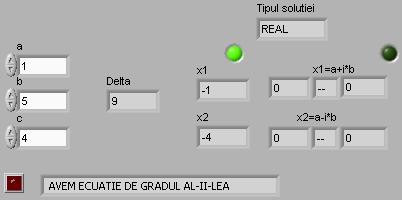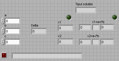 trei obiecte Num Ctrl pentru introducerea celor trei coeficienti ai ecuatiei: a, b, c;