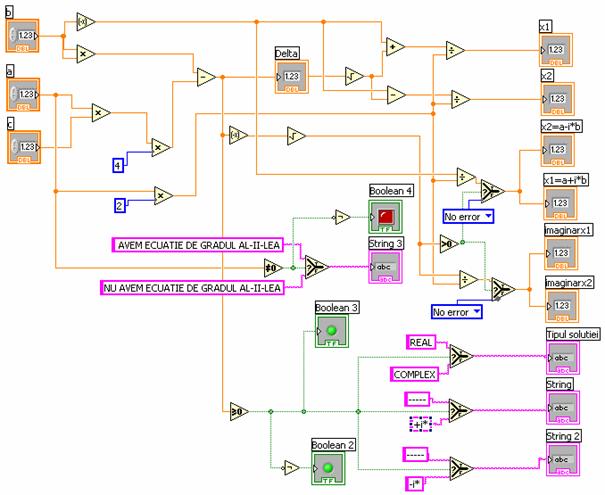 solutiilor complexe si a unui mesaj care sa indice existenta/inexistenta unei ecuatii de gradul al II-lea;