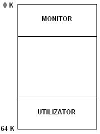 Una dintre primele metode de gestionare a memoriei folosite in cadrul sistemelor de operare timpurii este cea care grupeaza memoria in doua zone: una pentru utilizator si una pentru monitorul rezident al sistemului de operare. Monitorul rezident poate fi plasat in zona inferioara a memoriei, sau in cea superioara ( cu referire la valoarea adreselor ). Principalul factor care influenteaza aceasta decizie este in general localizarea vectorului intreruperilor; deoarece acesta se afla, de cele mai multe ori, in zona inferioara a memoriei, se prefera ca si monitorul rezident sa fie plasat in aceeasi zona.