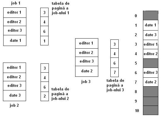 ( care sunt diferite ). In memoria fizica este deci necesar sa se pastreze o singura copie a codului comun ( fiecare tabela de pagina indica spre acelasi/aceleasi cadru/cadre ), in timp