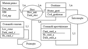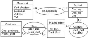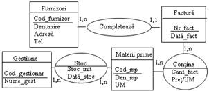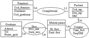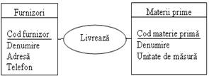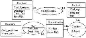 Considerand urmatorul MCD caracterizat prin faptul ca ne confruntam cu furnizori specializati, acestia putand livra doar o singura materie prima, livrarea realizandu-se doar o singura data: