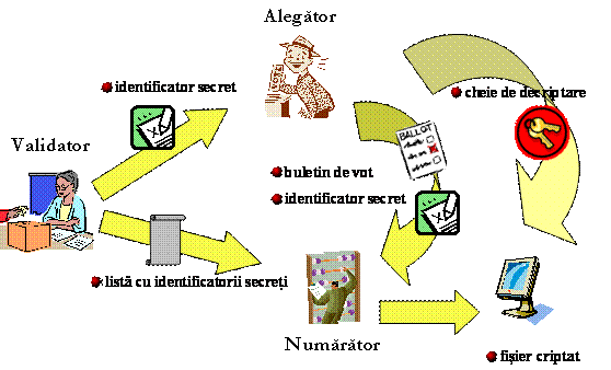 numaratorului cheile de decriptare necesare desfacerii votului. Numaratorul