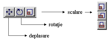 Butonul pentru scalare provoaca afisarea unui meniu derulant care permite selectarea modului de scalare dorit : uniforma dupa cele trei axe, neuniforma, combinata.
