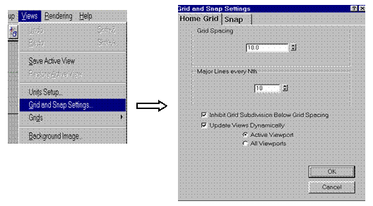 Pasul grilei si culoarea fondului se stabilesc selectand Views