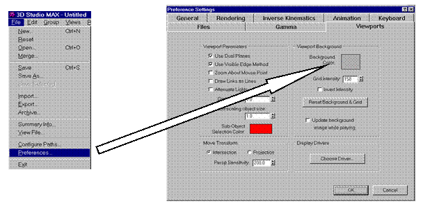 respectiv File Preferences Viewports Background Color pentru schimbarea culorii fondului.
