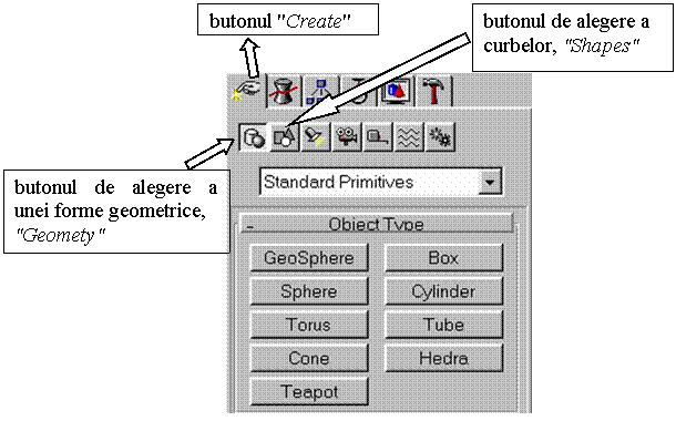 2. Se selecteaza o categorie : forma geometrica 3D, curba, sursa de lumina, camera de luat vederi ;