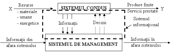 Sistemul informational se interpune intre sistemul condus si sistemul de management, ca in figura de mai jos [3].
