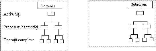 In cadrul unui domeniu de activitate, deci in cadrul unui subsistem informatic, informatiile si prelucrarile sunt structurate pe verticala ca in figura din stanga.