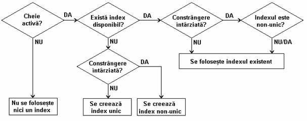daca constrangirea este activa si nu exista nici un index pe coloana(ele) acesteia atunci se creaza automat un index cu acelasi nume ca si constrangerea dupa urmatoarele reguli: