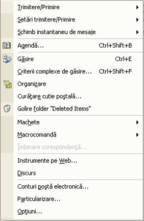 Se afiseaza meniul Instrumente extins, dupa cum se arata in ilustratia de pe pagina urmatoare.