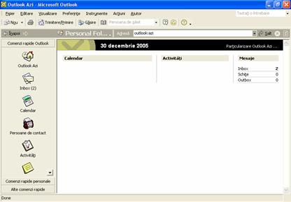 cum sunt folderele Inbox, Calendar sau Persoane de contact. Cand faceti clic pe una din comenzile rapide, se