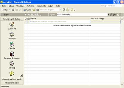 Outlook afiseaza continutul folderului Activitati. Observati ca Lista de foldere ramane deschisa.