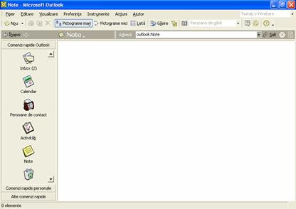 Fereastra Outlook contine butoane, pictograme, comenzi de meniu si alte elemente care va permit sa navigati prin Outlook si sa il utilizati eficient. Continutul acestei ferestre se modifica cand faceti clic pe butoane si alegeti optiuni.
