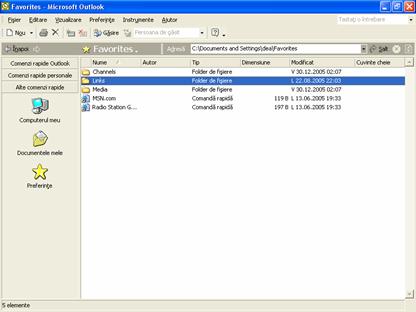 O pictograma in bara Outlook. Faceti clic pe o comanda rapida si Outlook va afisa continutul folderului sau fisierului corespunzator. |